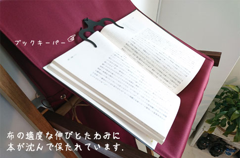 テンションと程良い沈み込みで本を包み込む様はフレキシブルな布の特徴ならでは。
