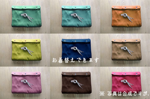 折畳み式で1.6 kgと軽く持運びが容易、布は取外して洗濯可、気分一新好みの色に取替えも可能。